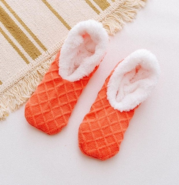 - Features: Plus velvet lining, non-slip rubber point socks bottom, solid color, diamond pattern