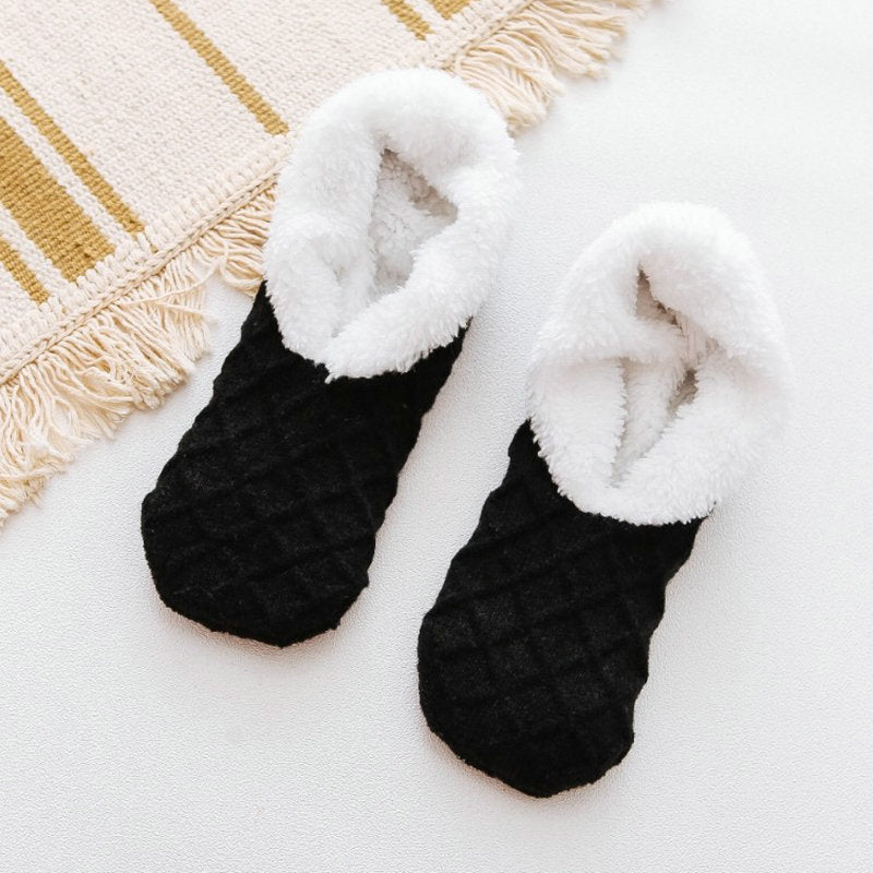 Designed for both style and functionality, these socks feature a non-slip design, making them ideal for wearing around the house. No need to tiptoe on chilly mornings – these socks provide the perfect solution to keep your feet warm and secure, even on smooth surfaces.