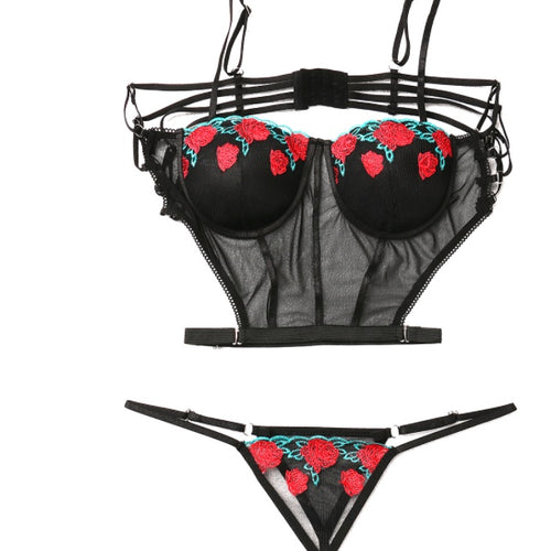 Underwire Embroidered Black Temperament Sexy Lingerie